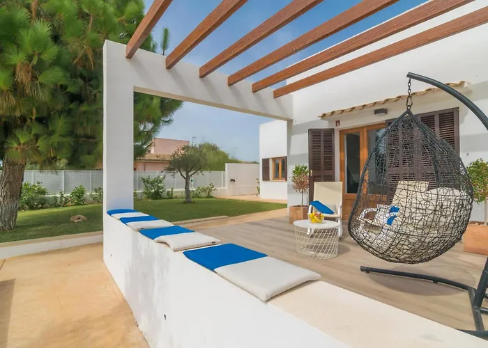 A kertre néző terasszal rendelkező 3 hálószobás Murta 26 Sa Coma villa 60 perces autóútra fekszik a Palma de Mallorca repülőtértől.